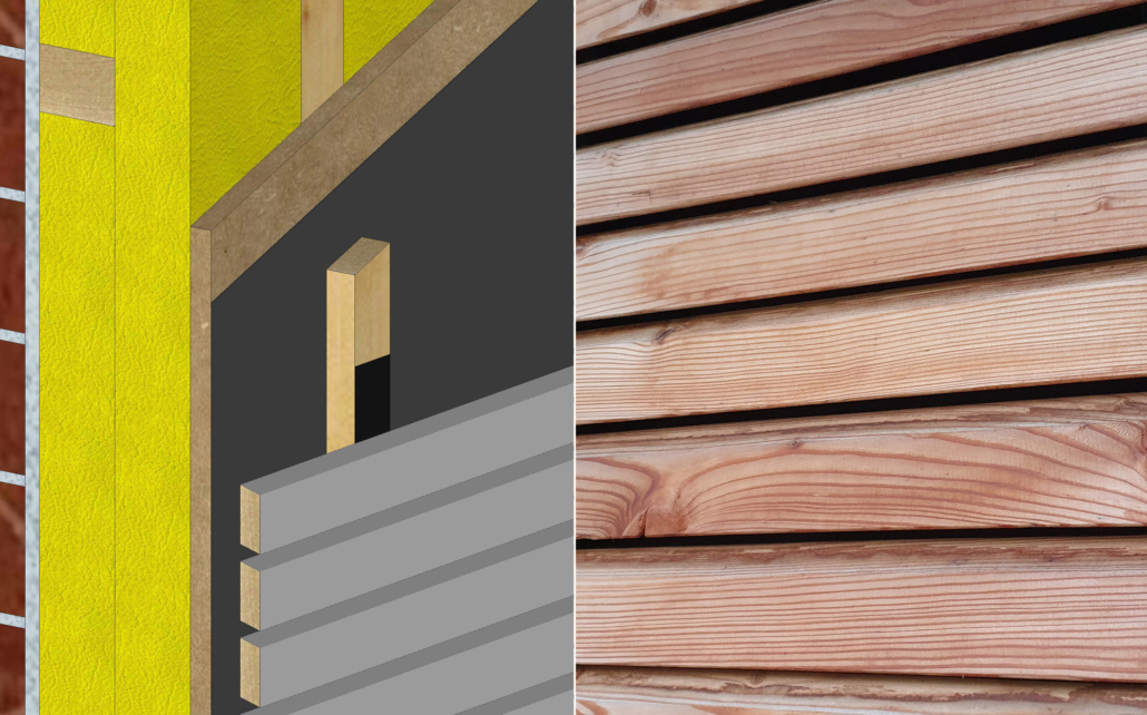 Zwei Merkmale sind bei dieser Fassadengestaltung anders als bei der Stülpschalung. Das Brett wird in der Breite begrenzt, weil eine mittige Befestigungsschraube nur bis zur Brettbreite bis 80 mm möglich ist. Ein bewährter Abstand der Bretter beträgt 8-10 mm. Zur Formstabilität sollte die Dicke 24 mm möglichst nicht unterschritten werden.